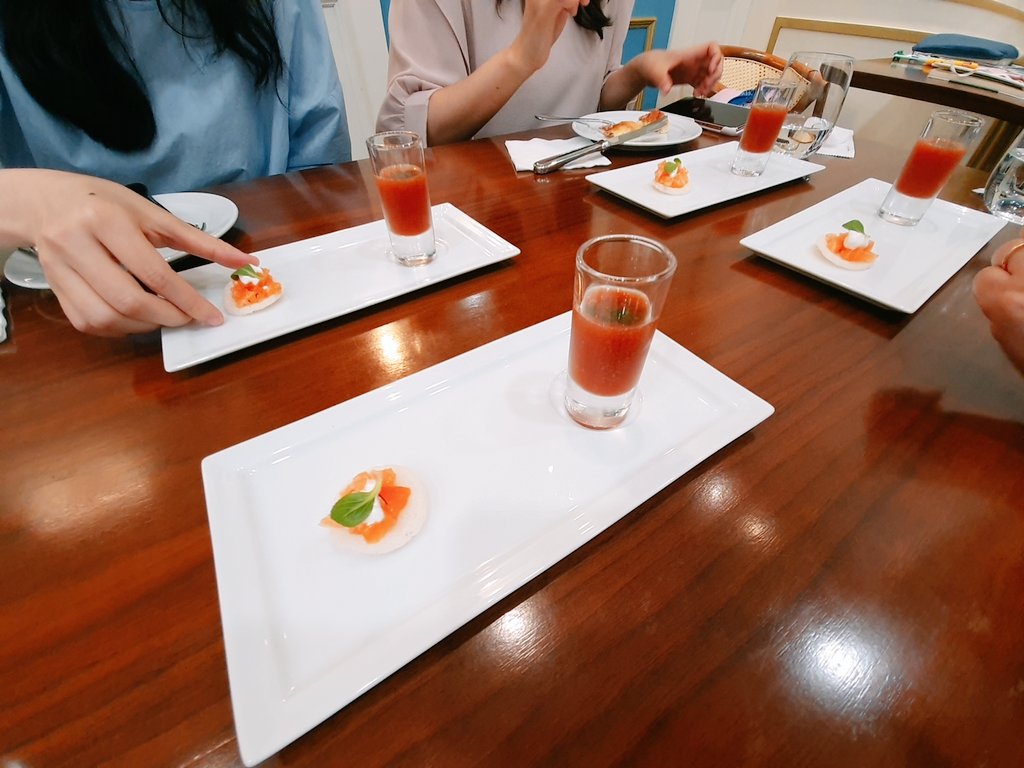 이 날은 토마토와 허브가 올라간 음식과, 토마토맛이 나는 웰컴드링크.