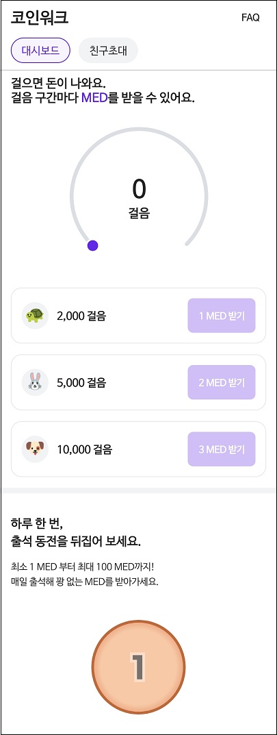 이 어플은 특이하게 메디블록(MED)이라는 코인으로 적립이 되는데요,