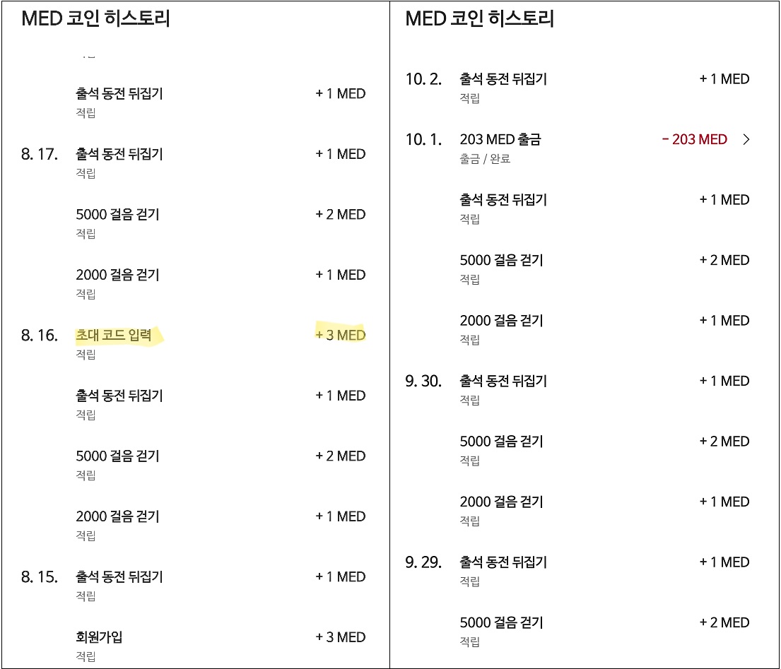 또한 가입시 3MED, 초대코드 입력시 3MED를 더 주니